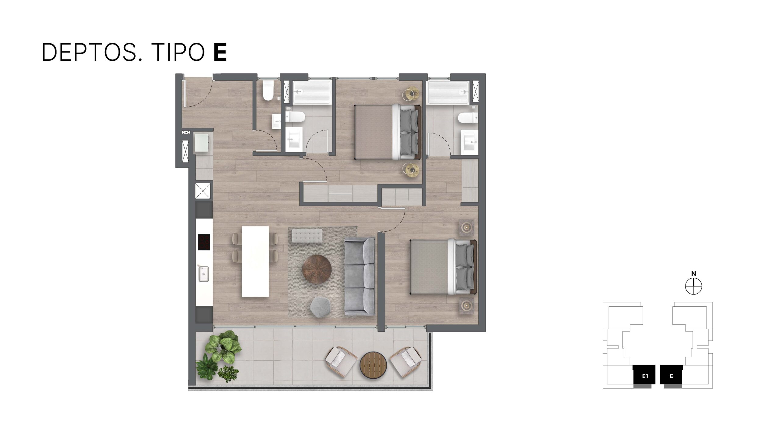 Departamentos de 1, 2 y 3 dormitorios desde 56 m2 más terrazas. Todos cuentan con cocina integrada full equipada y amplios interiores y exteriores. También departamentos dúplex de 1 y 2 dormitorios y los departamentos del último piso con azoteas privadas o rooftop con increíbles vistas.